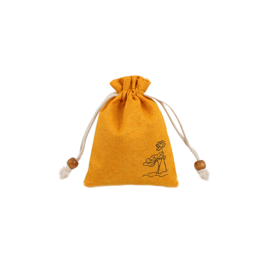 Мешочек из искусственного льна с орнаментом 8х10 см, желтый