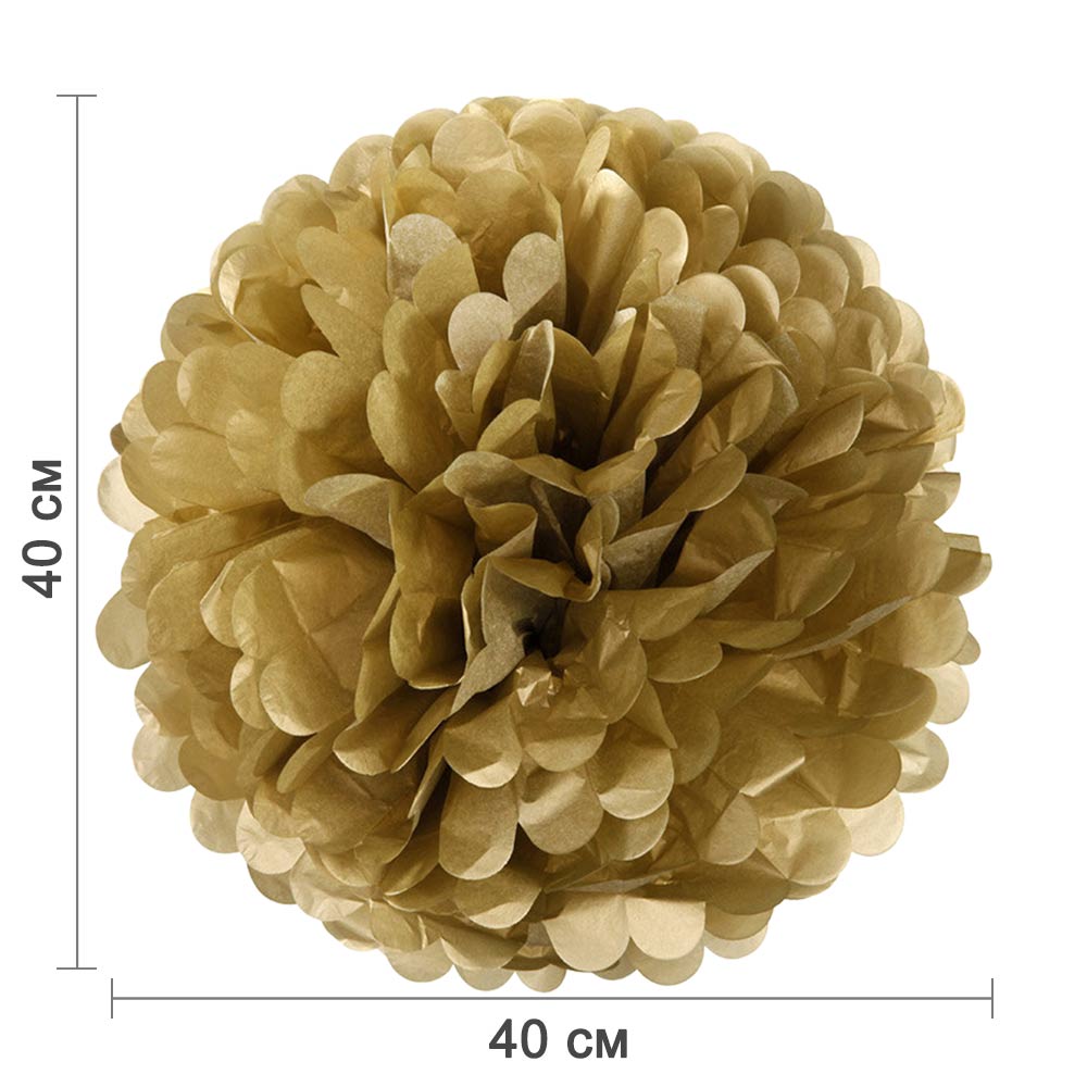 Золотой бумажный помпон диаметром 40 см — стильное и лёгкое украшение для праздников, фотозон, витрин и интерьера. Отлично подойдёт для дней рождений, свадеб, вечеринок и тематических мероприятий.