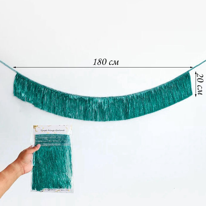 Растяжка бахрома 20см х 1,8м, металлик изумрудный